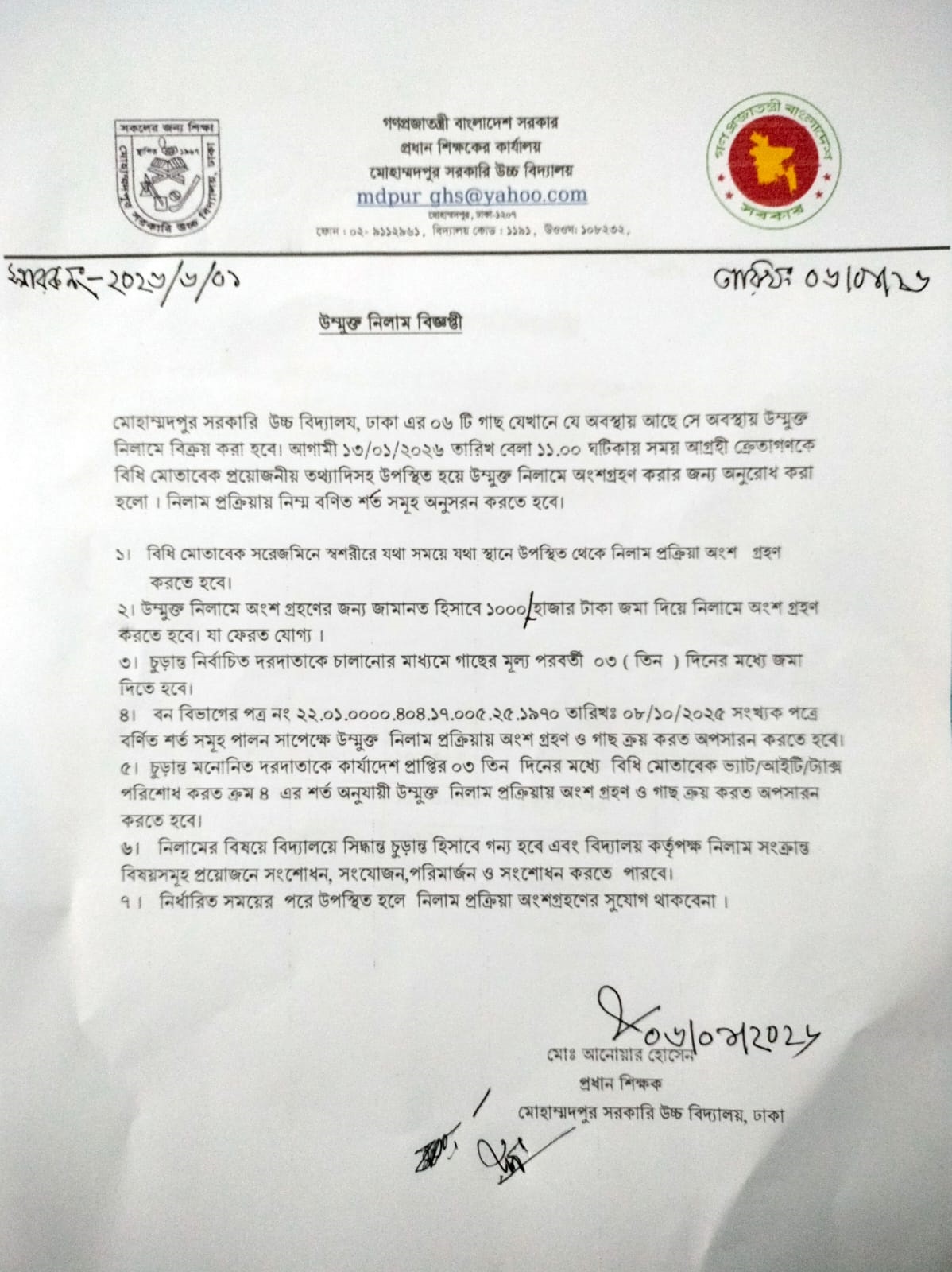 উন্মুক্ত নিলাম বিজ্ঞপ্তি - ২০২৬ উন্মুক্ত নিলাম বিজ্ঞপ্তি - ২০২৬