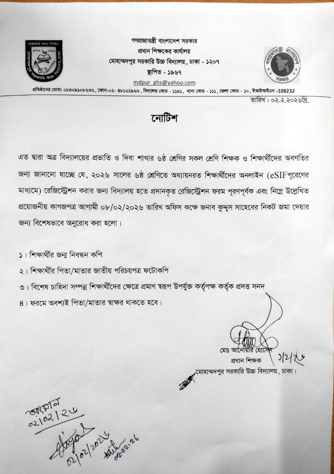 প্রধান শিক্ষক মোহাম্মদপুর সরকারি উচ্চ বিদ্যালয়, ঢাকা।
